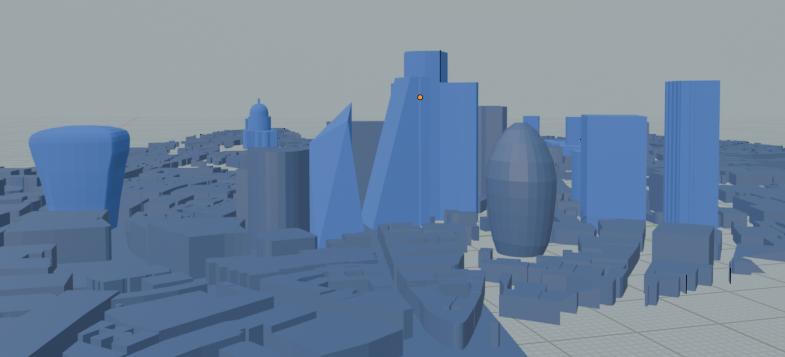 So instead I turned to the only logical alternative: learn the basics of 3D modelling in Blender.1 After a few attempts at simpler projects I set about modelling my scene. I used OpenStreetMap data to grab all of central London’s buildings, and then modelled a few more prominent buildings manually: