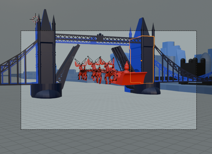 Next, I added a sleigh and some reindeer and worked out how to animate them, the camera, and Tower Bridge: